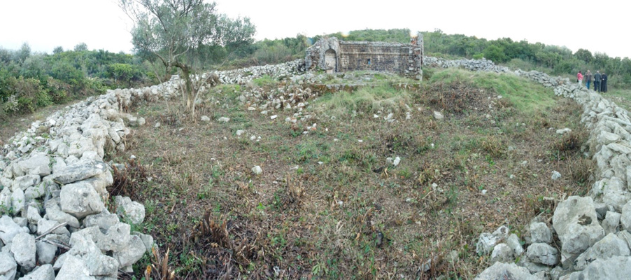 Crkva se nalazi u selu Krimovica, u Donjem Grblju. Izgrađena je na istaknutom položaju koje predstavlja kultno mjesto tokom više od 2000 godina. Tu su nađeni ostaci ilirskog tumula i rimskog objekta sa mozaikom, koji je uklopljen u pod sadašnje crkve. U zemljotresu 1979. godine crkva je znatno oštećena.