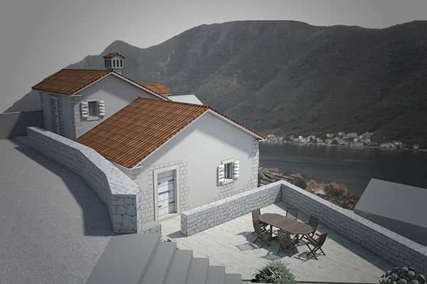 Predmetno građevina nalazi se u gornjoj zoni Perasta. Kuća je jednostavne pravougaone osnove, denivelisanim vrtom i izuzetnim pogledom.